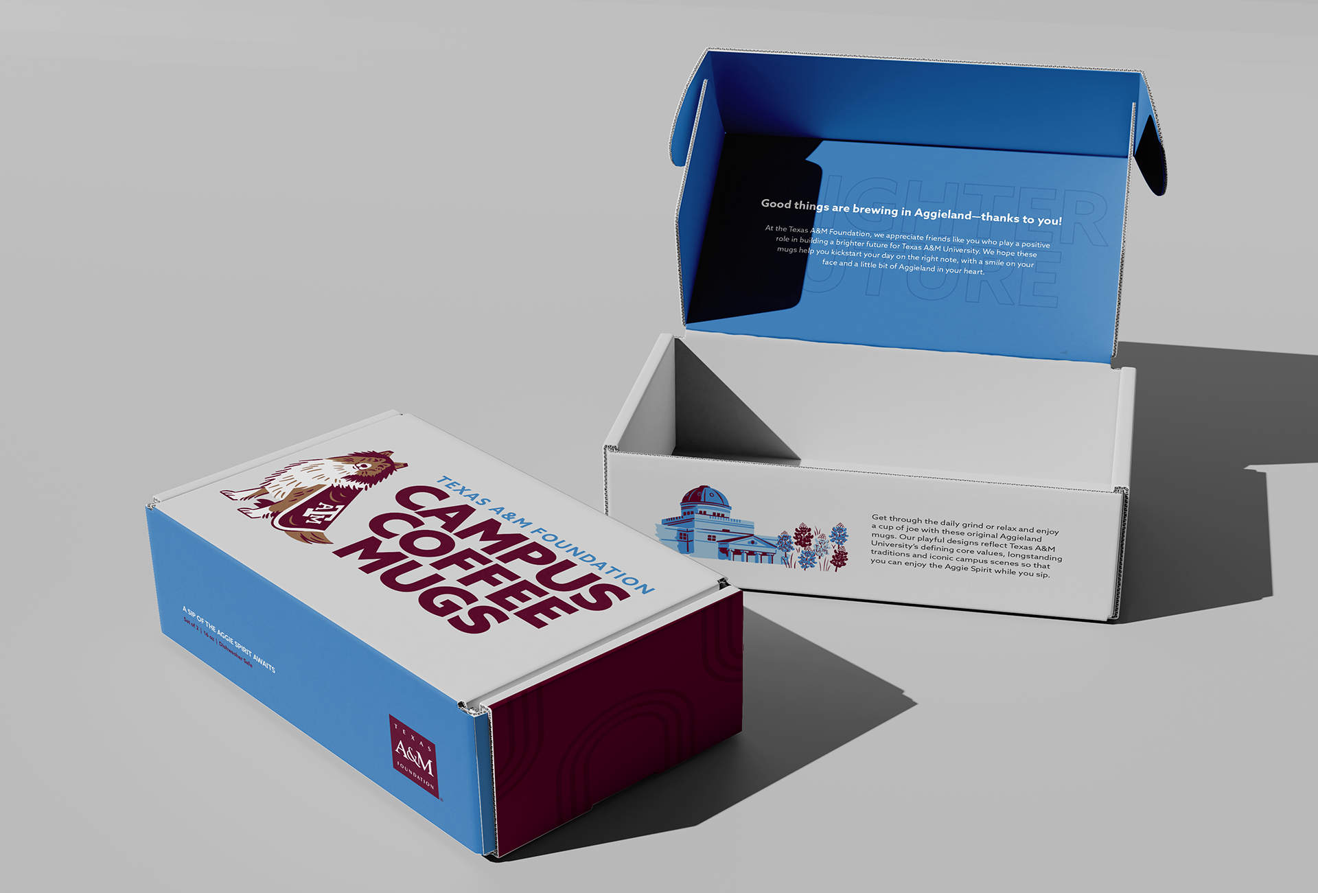 Each year, the Texas A&M Foundation creates a special end-of-year gift. Lightly inspired by doodle mug ware taking every Starbucks and college campus by storm, we decided to take on the challenge of creating an even better and Aggie-rific set.